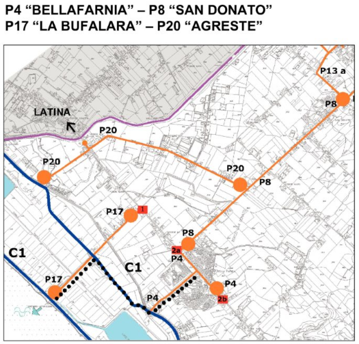 (La pista è già stata realizzata negli anni scorsi e nel suo sviluppo collega il centro di Bellafarnia con la costa in località Bufalara presso la foce della idrovora Lavorazione)